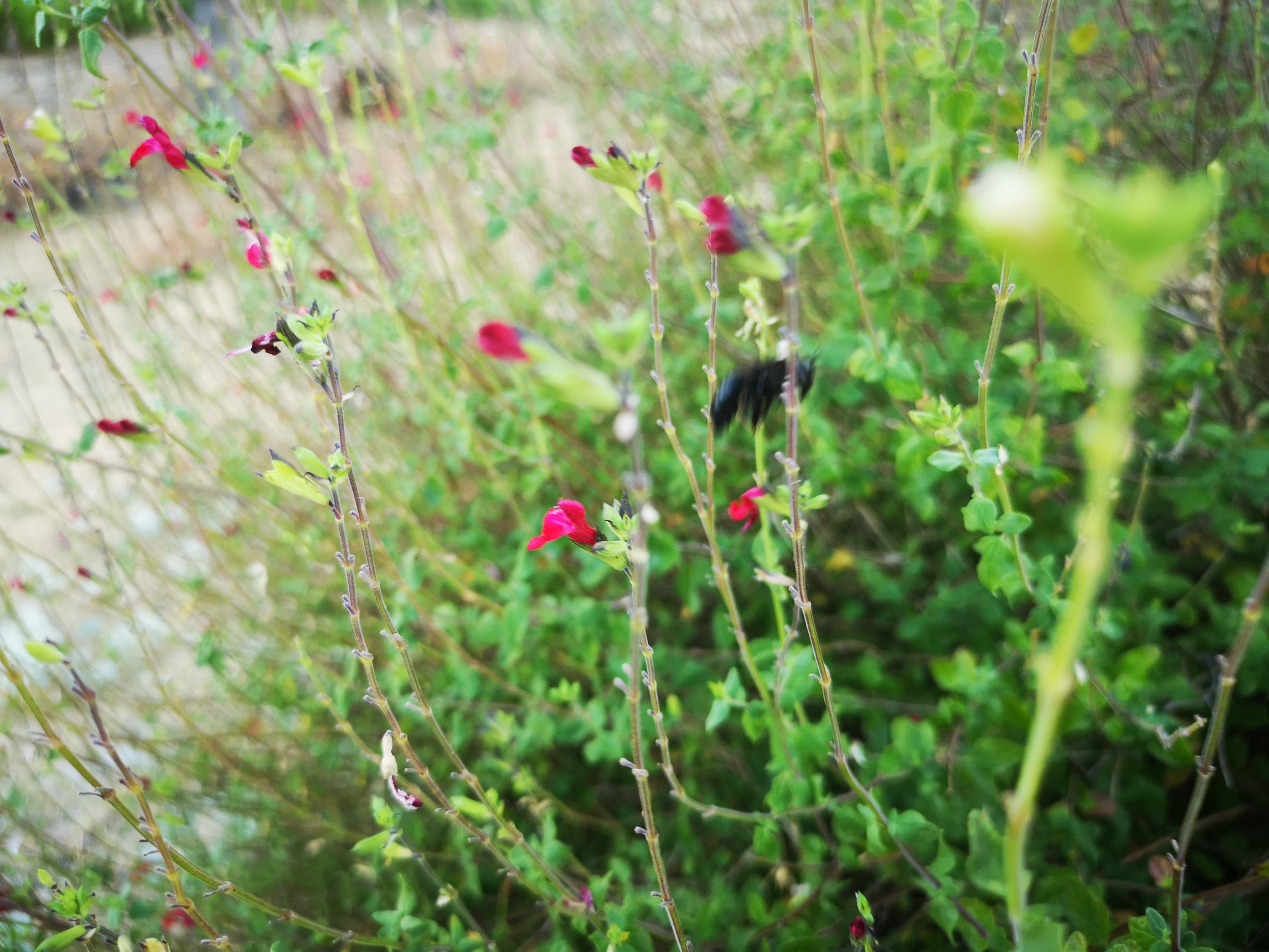 There’s a rare type of bumblebee here. Shiny black and very shy.